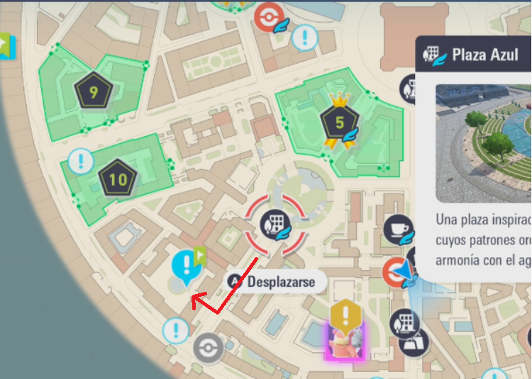 La ubicación a la que iremos estará cerca de la Plaza Azul por lo que no sería mal punto para ir. Solo es ir dirección sur y tendremos la entrada justo a nuestra derecha. Desde el centro Pokémon es aún mas rapido pero en este punto de la historia no lo tenía desbloqueado.