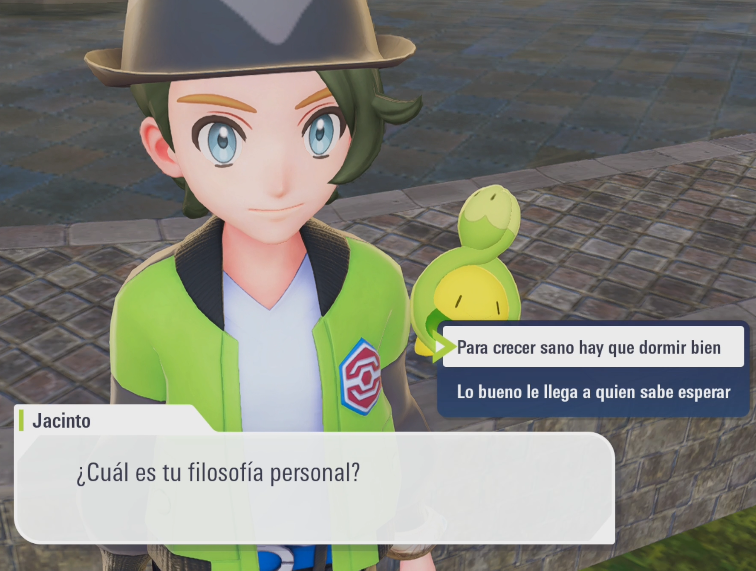 Ahora Jacinto hablará con nosotros y nos hará una serie de preguntas acerca del entrenamiento que hemos seguido con Budew, da igual que opciones elijamos ya que al final el resultado siempre va a ser el mismo.