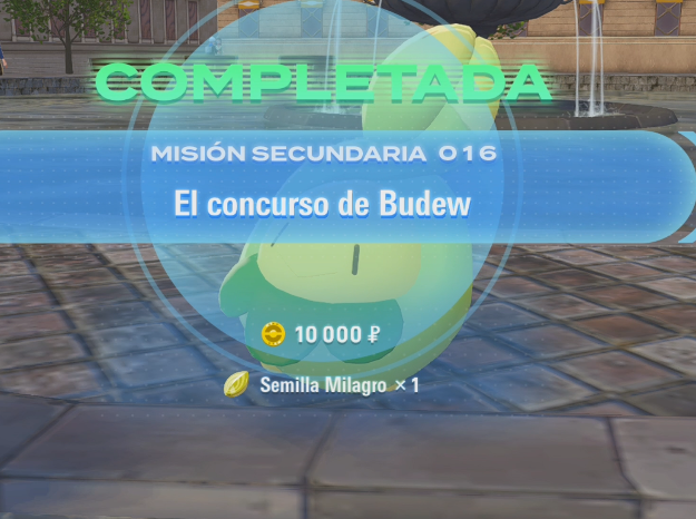 Como recompensa recibiremos 10000 Pokeyenes (menos los 5800 de la tasa) y una Semilla Milagro.