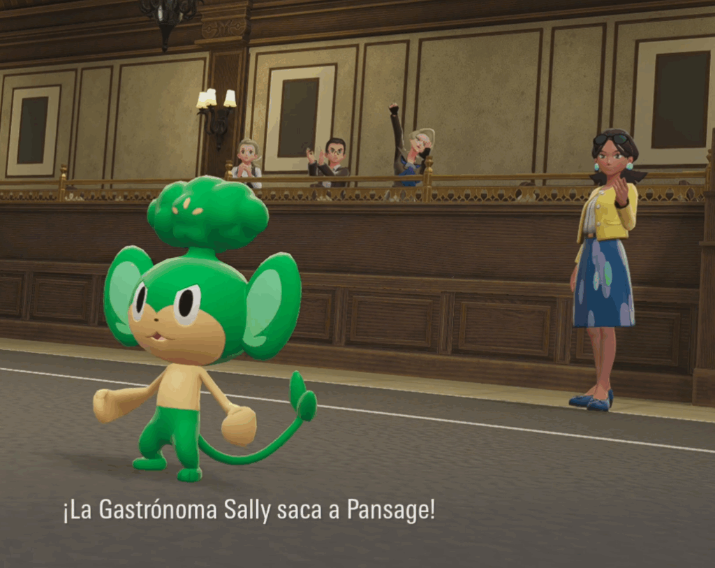 Aceptamos probar dicho menú e iremos a la zona de combate dentro del restaurante. Como «primer» plato tenemos a Sally que combatirá con 2 Pokémon que son Pansege y Skiddo de nivel 30. Aqui el Pignite del principio volverá a ser una apuesta ganadora o cualquier Pokémon con habilidades de Fuego.