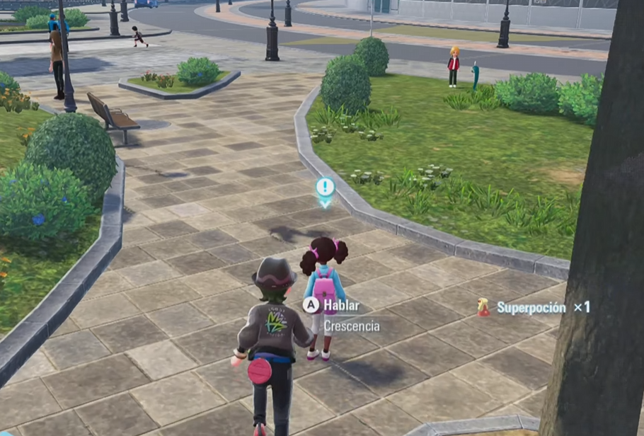 En esta misión tendremos que hablar con Crescencia, una niña con chaqueta azul y mochila rosa que hay en un parque al lado del centro Pokémon de la Plaza Central, en el Distrito Amarillo.