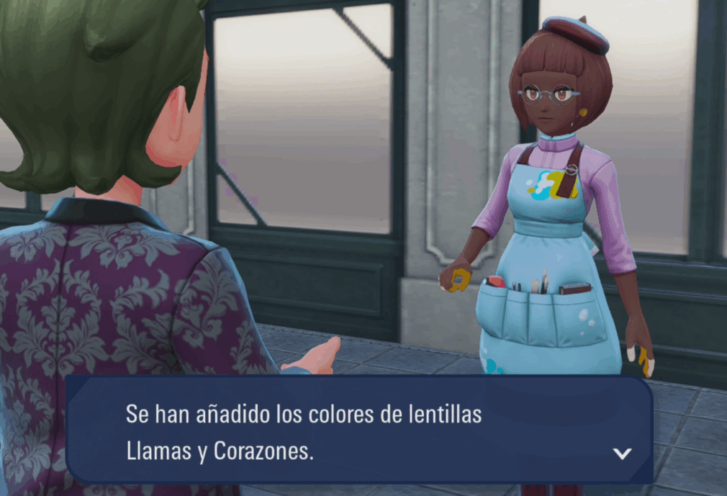 Agradecida nos dará unas lentillas llamadas Llamas y Corazones que podremos equipar el menú de atuendo pulsando el botón – de nuestro mando.