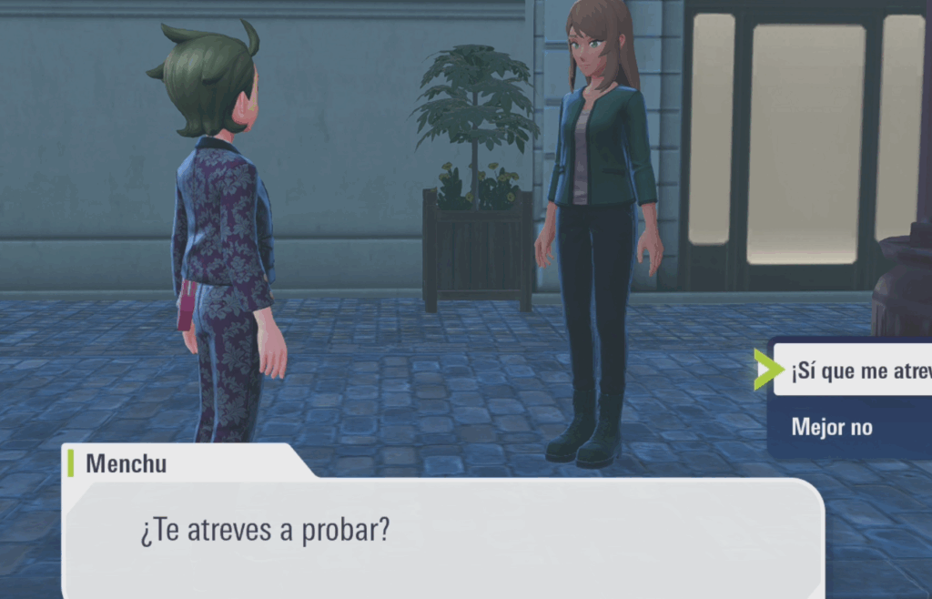En esta misión tendremos que hablar con Menchu que estará al lado del restaurante Le Postín en la Avenida Invierno, al lado de un cartel sobre los megacristales.