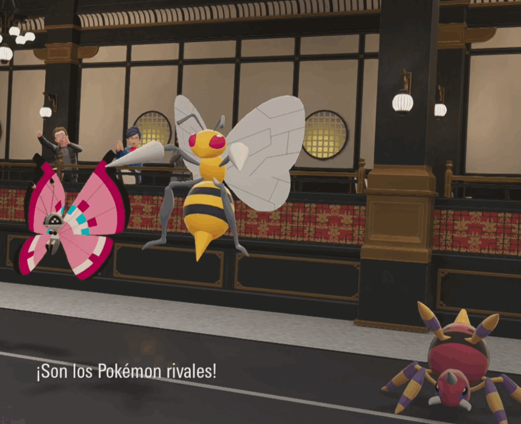 En el primer combate nos enfrentaremos a 3 Pokémon de tipo bicho, Vivillon, Beedrill y Ariados, los 3 son nivel 50. Aqui las habilidades de fuego y roca son nuestro mejor aliado.