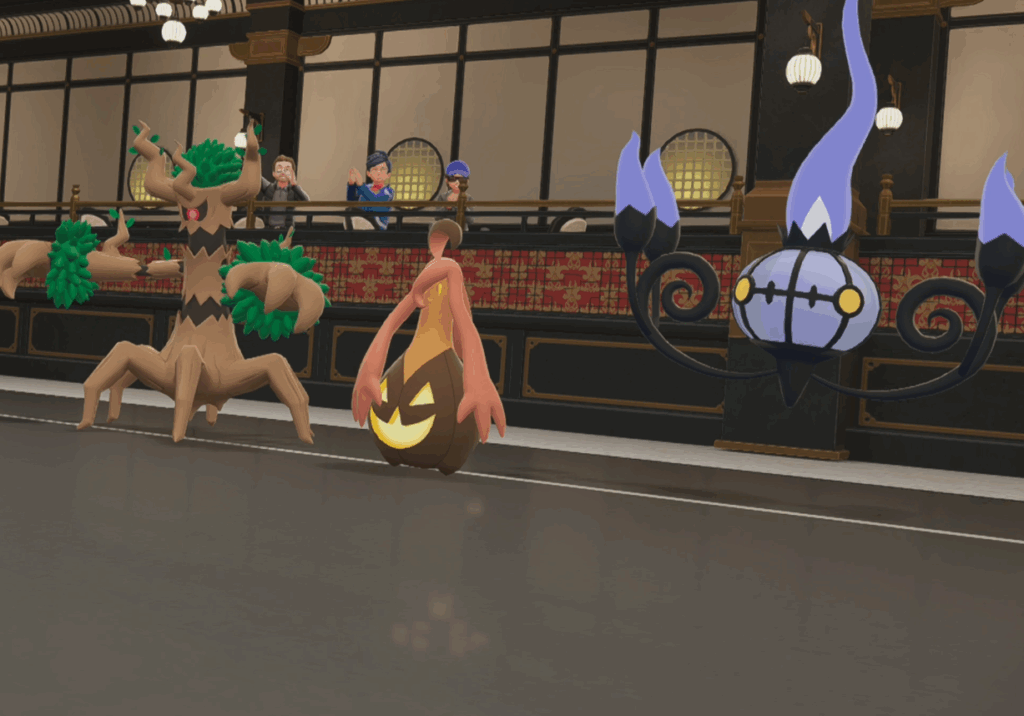 Para el cuarto combate tenemos otros 3 Pokémon esta vez fantasma. Serán Trevenant, Gourgeist y Chandelure nivel 50. Contra fantasma es fuerte el tipo fantasma.