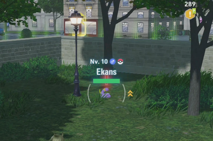Spinarak es una araña verde que aparece pegado a paredes en este zona salvaje. Hay muchos por lo que es muy fácil de encontrar. En la caseta grande de la parte sur incluso veremos uno versión alfa.