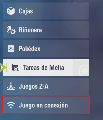 • Desde la pantalla principal del juego, navega hasta el menú denominado «Juego en conexión», que normalmente se encuentra debajo de la opción «Juegos Z-A».